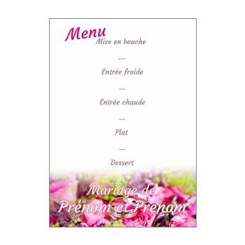 Généralement, sur votre menu de mariage, une face est réservée à l'annonce des vins et champagnes et une autre. Remboursement garantie pendant 14 jours 9,0 / 10 (25683 avis) identification. Carte menu mariage classique à personnaliser avec photos/textes.